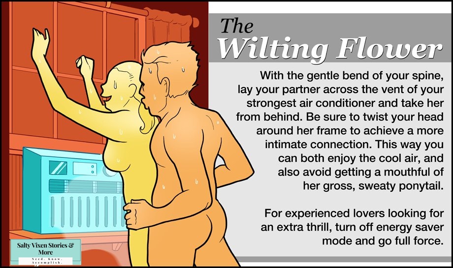 The Kama Sutra of being way too hot for sex. Laugh at the comics: 6 Cool Sex Positions to Beat the Summer Heat